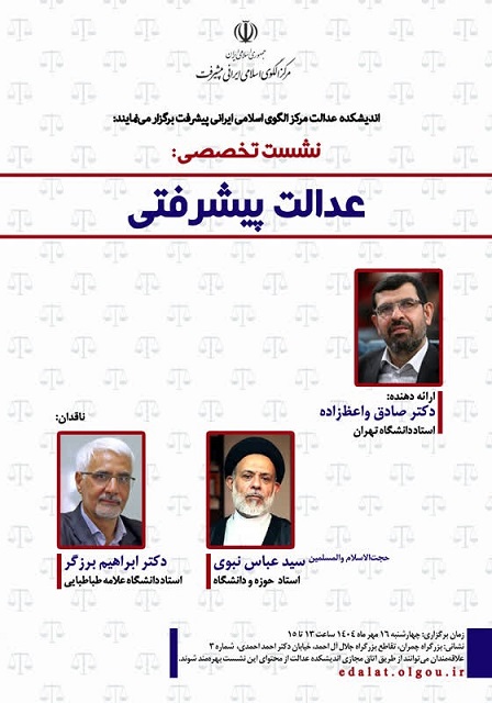 اندیشکده عدالت الگوی اسلامی ایرانی پیشرفت نشستی تخصصی با عنوان"عدالت پیشرفتی" برگزار میکند.